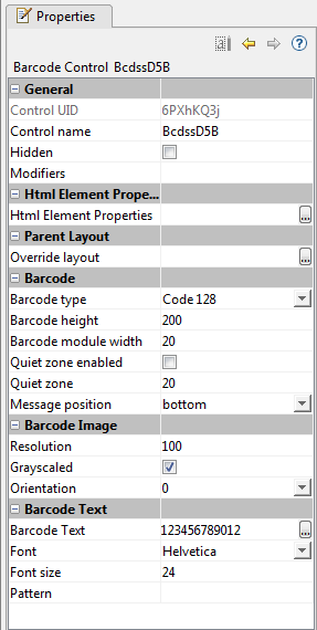 A Barcode control is used to place a barcode on a page. It can be used for web pages or for printed pages (see Designing Print Pages). A large number of different barcode types are supported – see the Preview of supported barcodes.