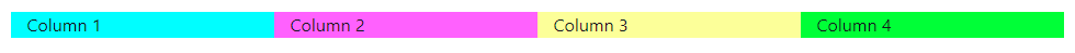This will result in equal sized columns on a single line for all viewport sizes from the largest down to the smallest breakpoint 576px: