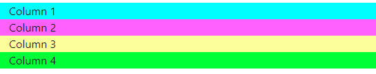 Let’s take a slightly more complicated example of four columns. With large devices I would like four columns of 25%, but on tablets I want that to adjust to two columns of 50% and then finally to adjust to a single column on phones. This is achieved by configuring each column like this: