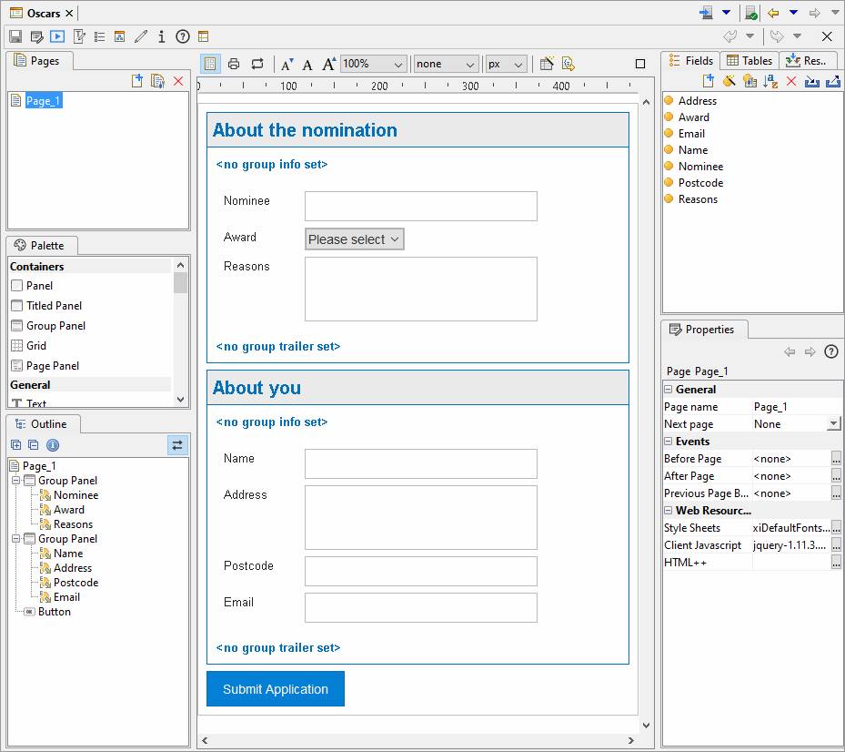 In this tutorial, we will create a simple one-page form. We will pretend this is to be used by the film industry to collect nominations for the annual Oscars event.