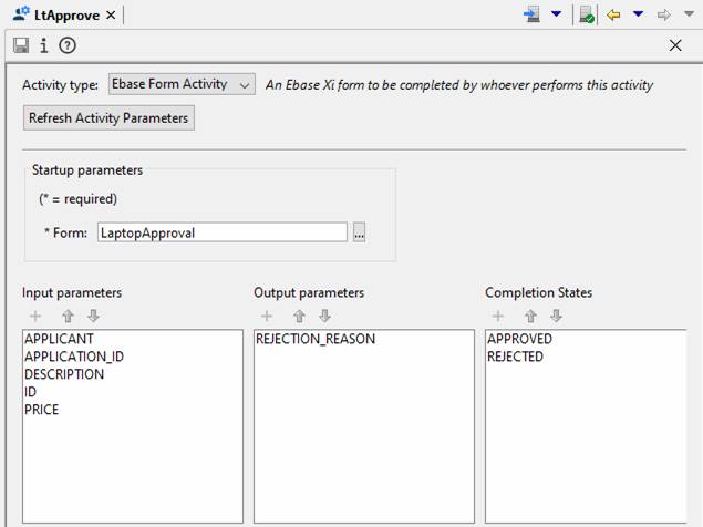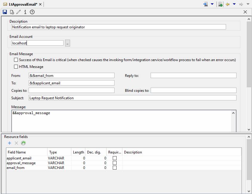 In terms of workflow, this process will be implemented as two interactive tasks i.e. the laptop request step and the subsequent approval/rejection step, and one system task