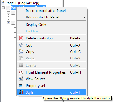 right-click on the ContactPanel Panel Control in the Outline View or WYSIYG View and open the Styling Assistant: