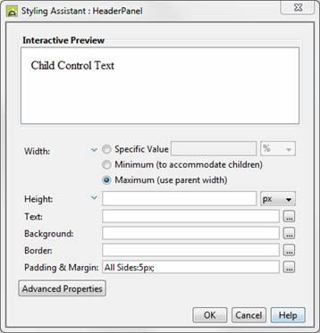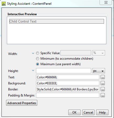 The ContentPanel Panel Control’s Styling Assistant should now look like this: