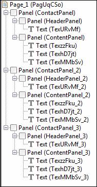 We can do this by copying and pasting the contact panel twice using the Outline View. Then double click the Texts controls to change them: