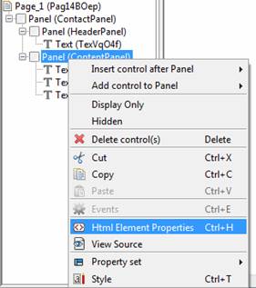 and content Class Locators to the Html Element Properties of the contact and content panels respectively.