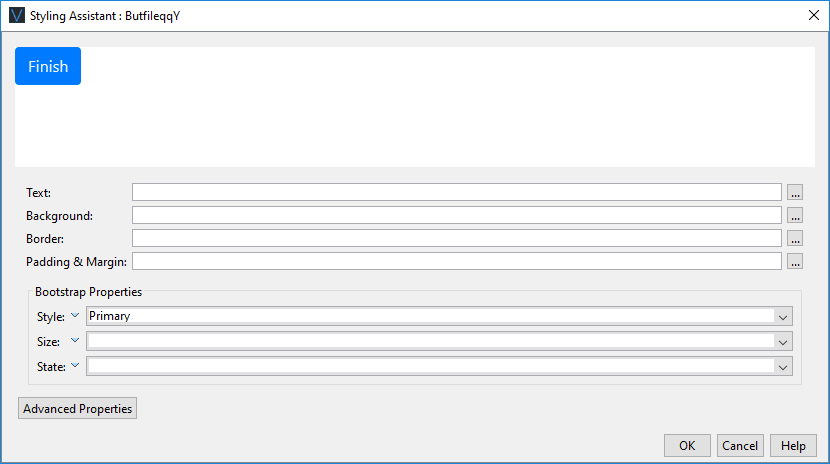 These properties are only available when a form is configured to use bootstrap i.e. the framework property in Form Properties is configured to use bootstrap (by default this property is inherited from the Presentation Template).