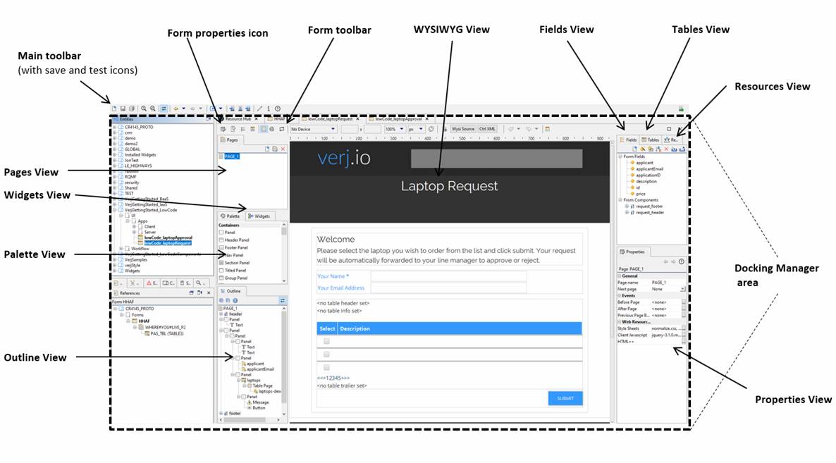 controls. These can be dragged to the WYSIWYG or Outline views.