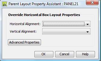 This dialog allows Horizontal Box Layout properties set on the parent container control to be overridden.