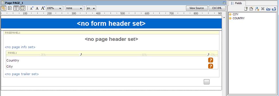 form containing one page and just two fields COUNTRY and CITY; these fields are