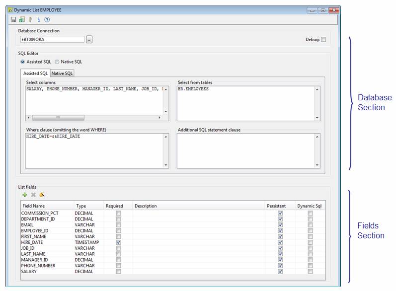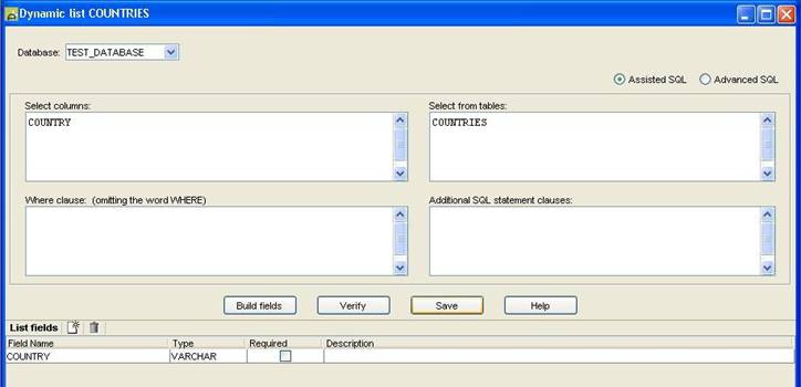 You can also create a Dynamic List from a Database Resource using the build list wizard in the Database Resource Editor. This can be very useful as the Database Resource Editor also contains a wizard to import tables and columns from a database schema; by combining these two wizards you can create a Dynamic List with a few mouse clicks.