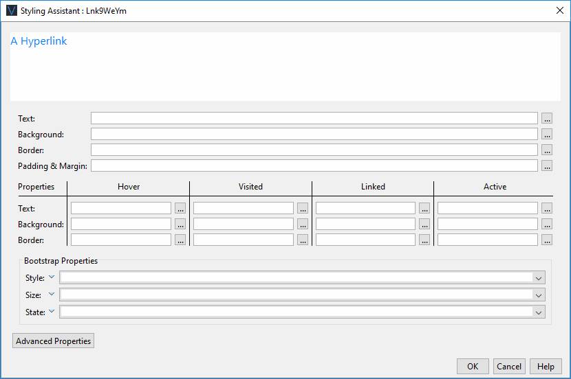 A hyperlink can have multiple states and the Hyperlink Control has properties that correspond with each of these states, plus a set of default properties that apply to all states unless specifically overridden. The hyperlink states are: