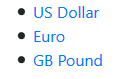 Here is the same list, now styled as a Bootstrap Nav menu: