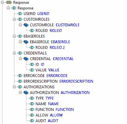 The format of the input and output documents for the service is defined in the Logon Service Resource linked to the service and cannot be changed. The input format is defined by the Request document and consists of up to three parameters where each parameter has a value and source type. This Request document represents the user’s input security parameters e.g. userid + password or some sort of token. When the Logon Service is called when a new session connects, these security credentials are extracted from the HTTP request – see Custom Authentication for a description of how this is done and the options available. When the Logon Service is called from a script, the security credentials are supplied by the script – typically these are userid and password, see Calling a Logon Service.