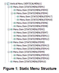A menu consists of a number of menu items, where each item is identified by its item name. Within each menu structure, these item names must be unique – this is true regardless of whether the menu item is static or dynamic.