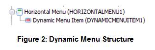 A dynamic menu structure is created by dragging a Dynamic Menu Item Control to any point in a menu structure. The diagram belows shows a horizontal menu where the entire menu structure is dynamic: