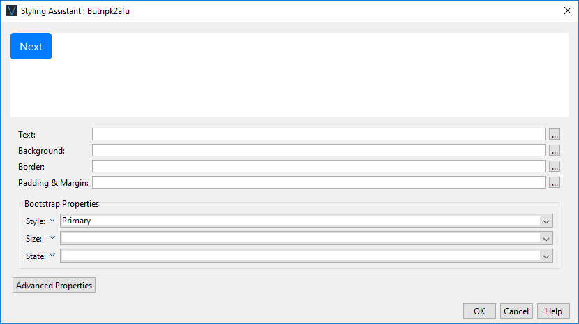 These properties are only available when a form is configured to use bootstrap i.e. the framework property in Form Properties is configured to use bootstrap (by default this property is inherited from the Presentation Template).