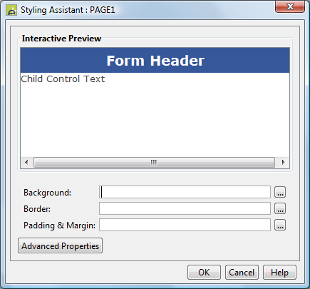 The Styling Assistant for Page Control supports the configuration of page level properties such as: page size and alignment, surrounding JSPs.