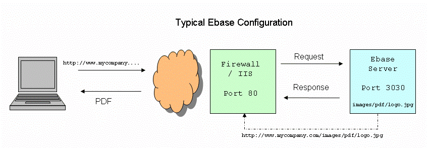 PDF document comes into the Ebase server via the firewall or IIS using the URL: