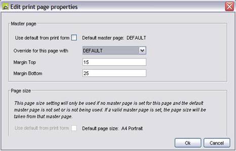 The margin top and margin bottom can be configured separately which is particularly useful when using Print Master Pages that may contain a border or line numbers. The margin top and margin bottom represent pixels from the top and bottom edge of the print page. For example - setting the margin top to 30 will draw any elements that overflow onto a new page start 30 pixels in from the top of the page. Setting the margin bottom to 25 will draw any dynamic elements to 25 pixels from the bottom of the page and then start a new page is required.
