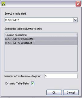 A dynamic table is specified as dynamic by selecting the Dynamic Table Data when adding the table to the print page. Draw the table onto the print page and a configuration dialog will be displayed. As default the dynamic table data checkbox is selected. To disable the table dynamic functionality - deselect the Dynamic Table Data checkbox.