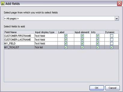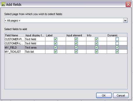 A dynamic Tick List is specified as dynamic by selecting the Dynamic checkbox when adding it to a print page. As default the dynamic checkbox is selected for all Tick Lists. To disable the dynamic behaviour for a Tick List, deselect the dynamic checkbox.