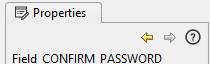 The Properties View Toolbar is shown at the top of the properties view panel. On the left it displays the type and name of the element whose properties are currently shown. The forwards and backwards arrows   allow navigation to previously displayed properties. The help icon  displays help on the element currently displayed.