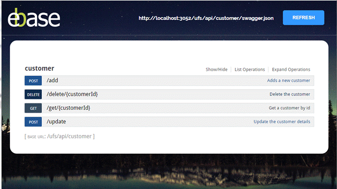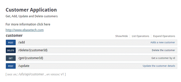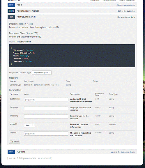 shows an endpoint configured as a HTTP POST that accepts a customer JSON object