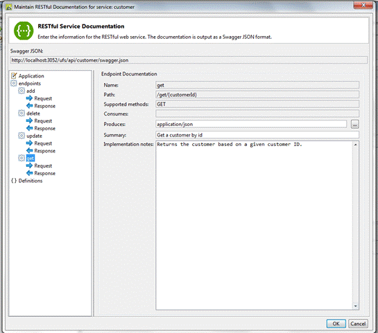 documentation can be accessed through the designer by clicking the icon in the RESTful Web Service toolbar or
