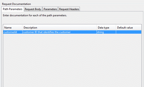 parameters are enclosed within {}, e.g /customer/{customerId}.