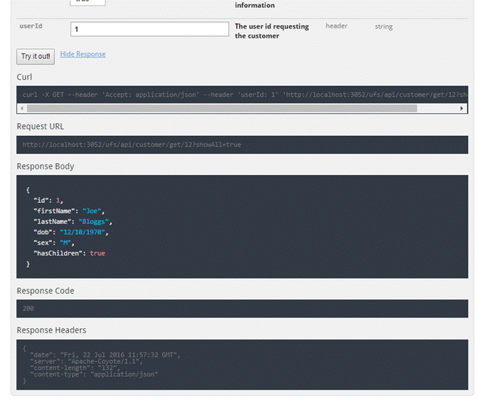 shows an endpoint configured as a HTTP GET and returns a customer from a