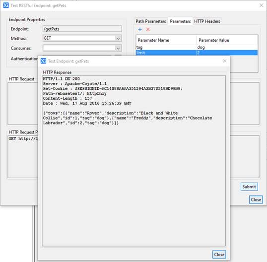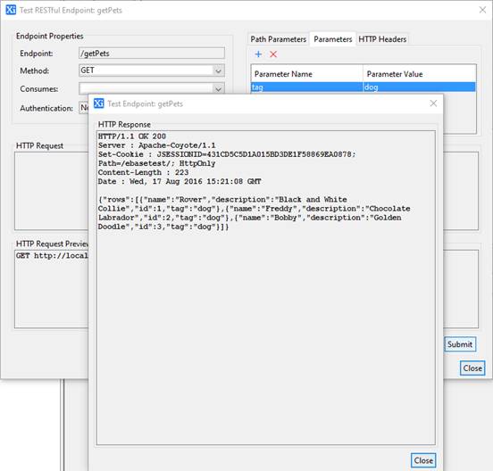 In this tutorial, we will create a new RESTful Web Service and add an endpoint to retrieve all the pets in our online pet store application. The endpoint accepts two optional request parameters that filter the type of pet and limit the number of pet records retrieved from the database. We will also add a script to test whether the database table exists and create it if required that we will be using in this tutorial.