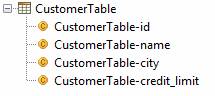In the following example, we are loading the table CustomerTable from the database table customer. The table is defined with no resource and four columns: