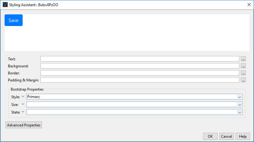 These properties are only available when a form is configured to use bootstrap i.e. the framework property in Form Properties is configured to use bootstrap (by default this property is inherited from the Presentation Template).