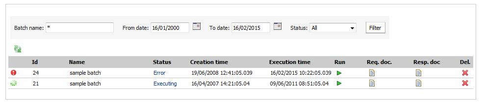 Use the filter bar at the top of the page to filter the display of batches displayed in the table.