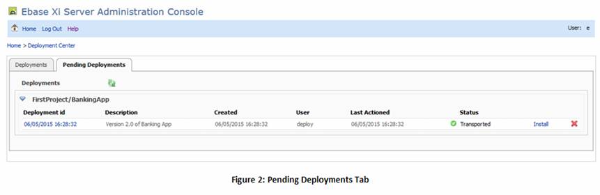 This tab shows all deployments with Transported status. The files for these deployments have been transported to the server but have not yet been installed and activated. Click on the install link on the right-hand side to install a deployment.