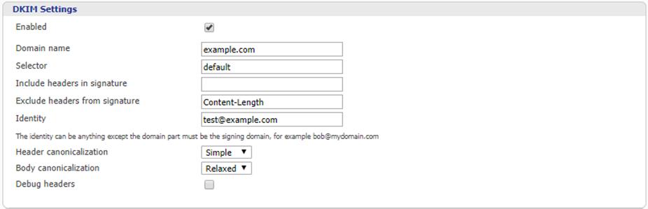 · Text: Add the following text to the Text section v=DKIM1; p=<public-key>