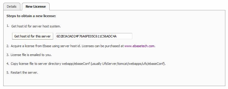 This tab explains the procedure to acquire a new license. Refer to www.verj.io for details of available licenses. Each license requires a host id which uniquely identifies the server system: click the Get host id for this server button to obtain this then follow the steps below.