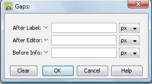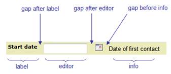 Gap before the field information (see diagram below). This property has the same effect as the after editor property unless the system inserts a calendar or value pattern text between the editor and info sections of a field. |