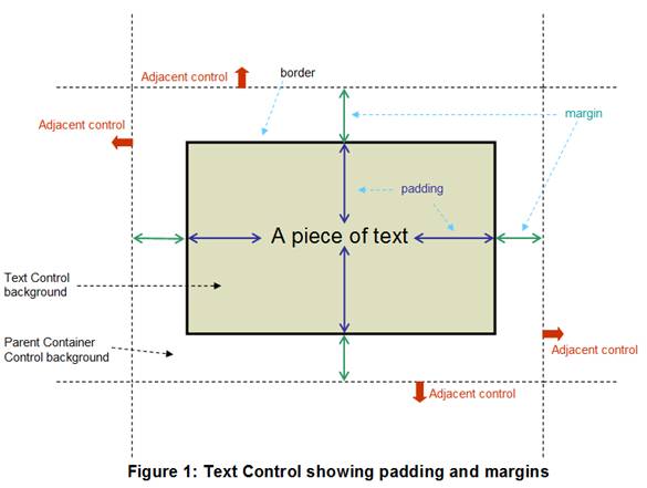 Padding is the space between the control’s content and its border. Padding space is displayed with the background specified for the control. See Figure 1 below.
