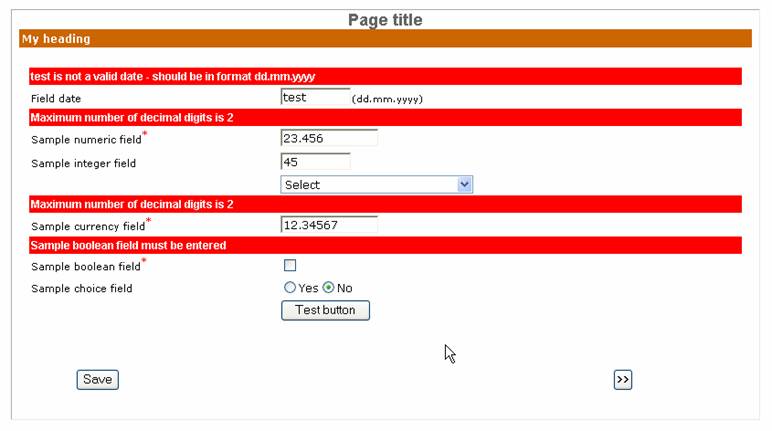 enabled, Ebase Xi highlights both the current field and fields with error using