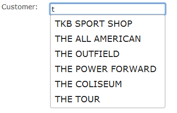 list of values as they type (see the jQueryUI website for more information). Here we will use it to present a list of possible customer names that start with the