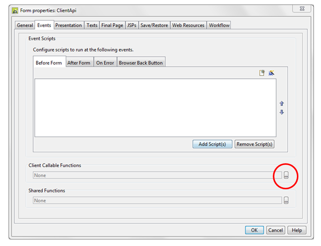 9. Similarly, use the Web Resources tab of Form Properties to add Client Javascript files for the jQuery library and jQuery UI library.