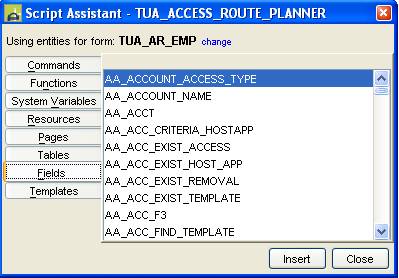 The script assistant is designed to assist with the task of editing FPL scripts. It provides lists of form fields, tables, pages etc that can be selected and then inserted directly into the main script window at the current cursor position.