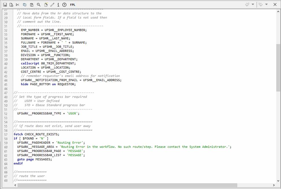 Scripts are small programs which can be written in a choice of programming languages. This document covers the use of Forms Processing Language (FPL), the Verj.io English-like scripting language. The full syntax of the language is shown in FPL Script Command Syntax. This language provides you with the ability to: