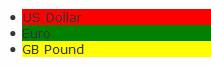 appropriate classes on the List Item controls. This is just a simple example: a