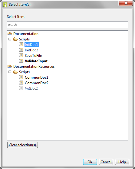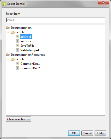 selection and will only show objects of the appropriate type. An object is available if it is in the same project