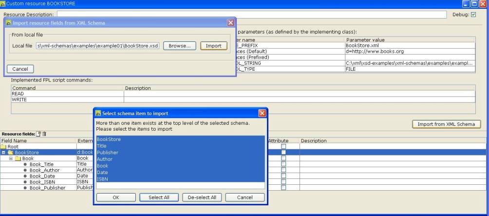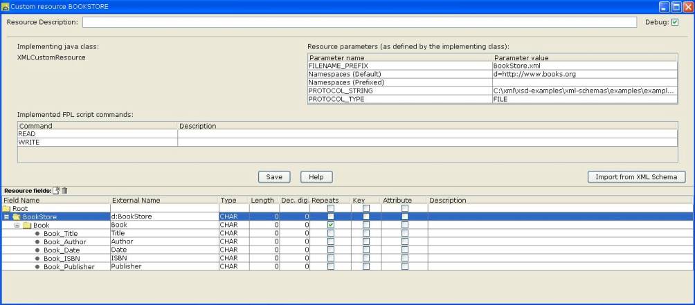 Using the import from XML Schema, automatically populates the Resource Fields panel. To import from an XML Schema click the 'Import from XML Schema' Button: