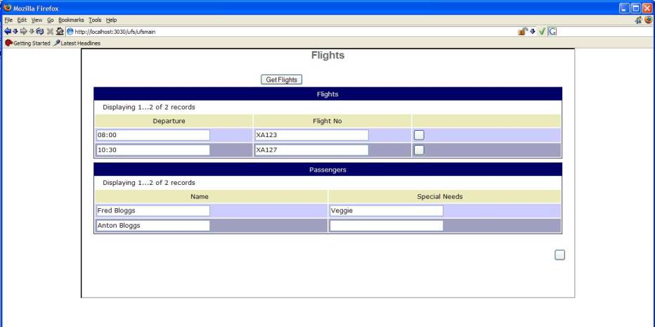 The image below demonstrates the XML returned when a 'fetchtable Flights' and 'fetchtable Passengers' is called after issuing a read XMLCustomResource when running the example form.