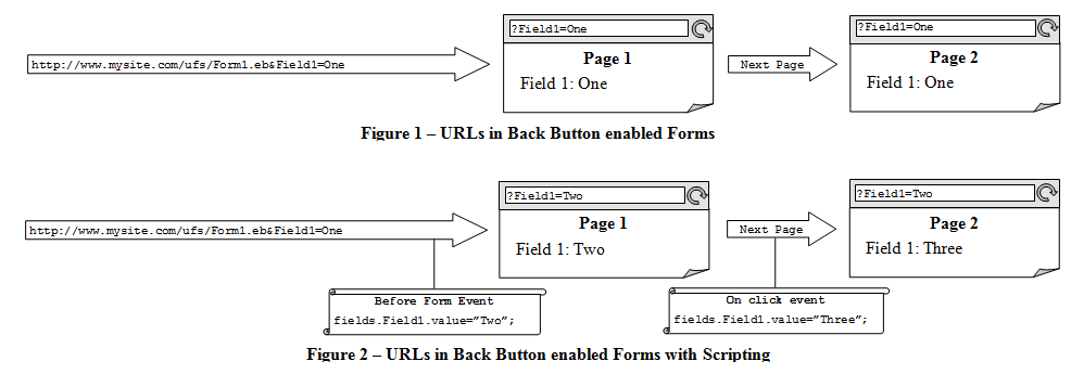 an attempt by the user to use the back button to navigate from FORM4 to one of the pages in FORM3 will be unsuccessful because FORM3 is no longer in memory. There are a number of these scenarios where the target page is part of a form that is no longer accessible to the server because the referenced form has terminated and been removed from the server’s memory. This occurs in the following circumstances: