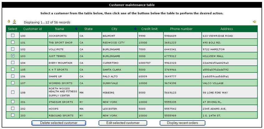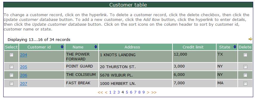 When the number of rows in the table is greater than the number of rows to be displayed, the table navigation bar is displayed. This consists of: